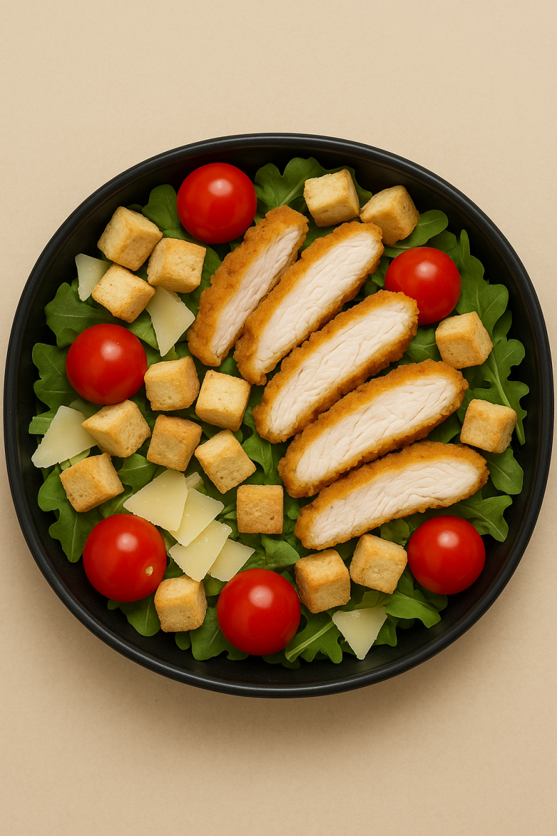 Salade - Tomates cerises - Poulet - Croûtons - Copeaux de Parmesan - Sauce Caesar