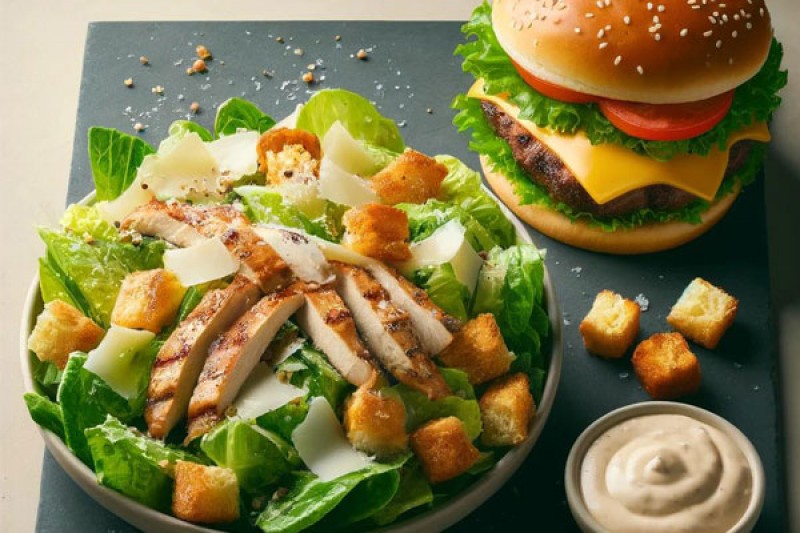 Une salade césar et un cheeseburger, pour 10,62 €