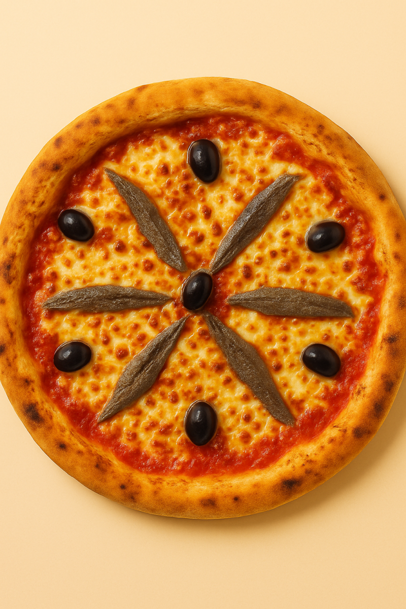 Sauce Tomate - Fromage - Anchois - Olives - Origan